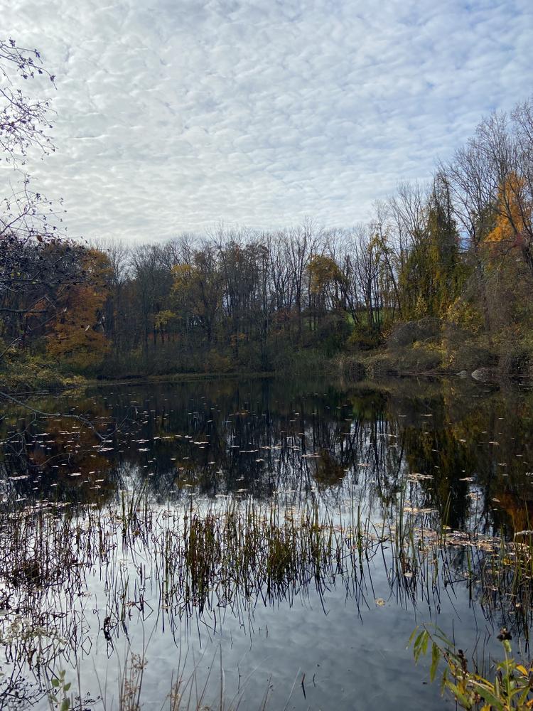 The high point of the Aicher Preserve, at an elevation of 505 feet, provides striking views of a splendid hayfield, cornfields, and woodlands, all part of the preserve. A small lake and an alder shaded stream form the headwaters of Bark Meadow Brook.