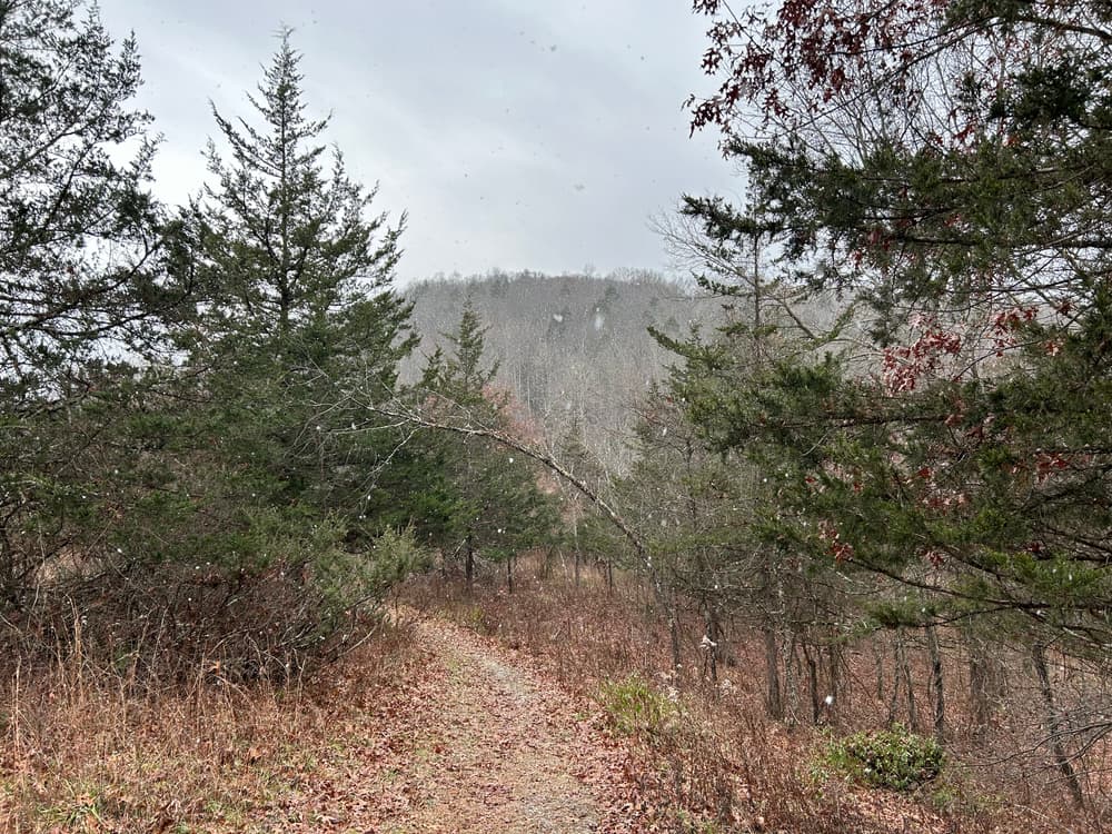 Travel 1.5 miles north, then turn right on to Studio Hill Road. At the top of the hill turn right onto Studio Hill Circle. The trail head is on the right side of the road with a large kiosk.