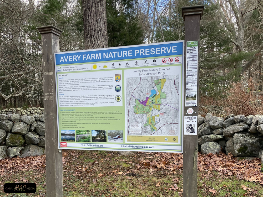 The trailed portion of the preserve is within the West Tract of Avery Hill Road, 0.8 miles north of Route 214. Parking lot is on the East tract.