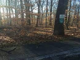 The Blinnshed Ridge Trail follows along the Neck River and offers scenic views of the forest with its oak and tulip-popular trees, which bloom in the springtime into yellow and orange flowers.