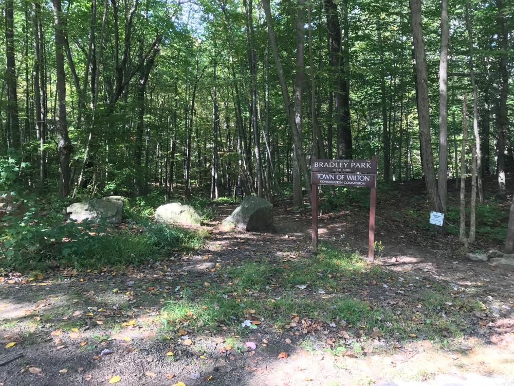 Bradley Park was acquired by the Town of Wilton in 1968 and 1969 and remains in a natural state with hiking trails and a short section of an equestrian trail.
