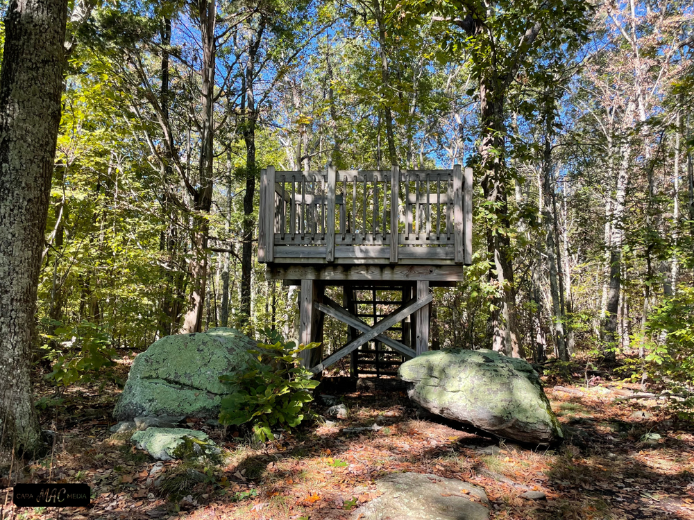 Highlights include a viewing platform and bench with views of the lower Connecticut River, a massive tulip tree more than 100 years old, and a large boulder inscribed 1840 is on the Essex/Deep River town line. The boulder is also a location for geocaching enthusiasts.