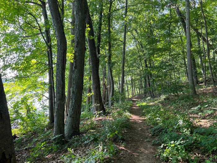 The trail crosses several streams, some of which have small waterfalls. The crossing near the camping area has a bridge while the others require simple rock hopping. A portion of the trail parallels Chapman Pond where multiple overlooks afford views of the pond and wildlife, including hawks, herons, and bald eagles.