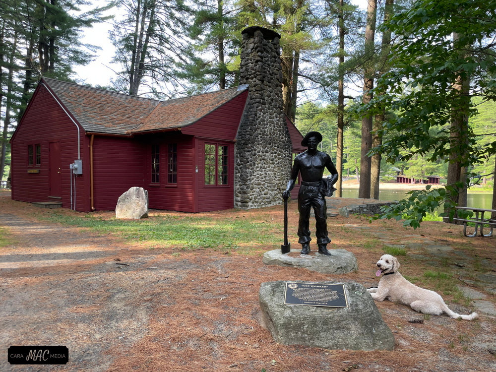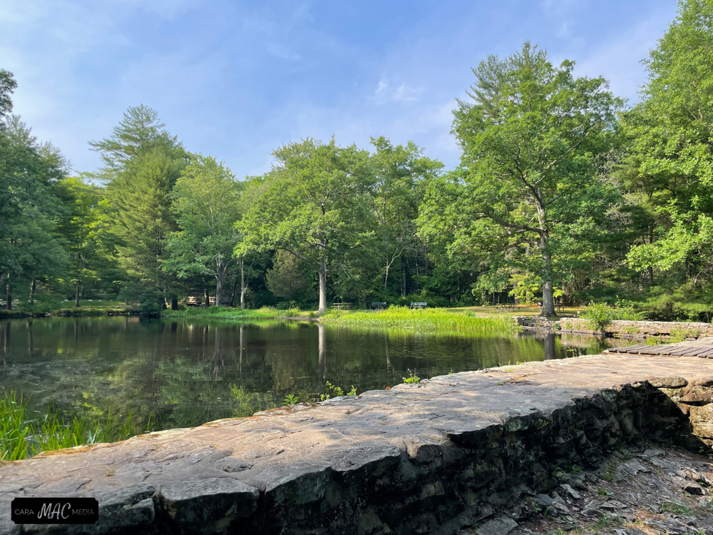 Within Chatfield Hollow State Park, Chatfield Hollow Brook flows towards Long Island Sound between two high ridges covered with oak, beech, and hickory. In 1934, the Civilian Conservation Corps built an earth and stone dam across the brook, creating seven acre Schreeder Pond. Pines planted at the same time now form a green setting around the pond. In 1949 Chatfield Hollow was designated as a state park.