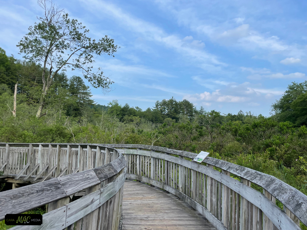 Be aware that there is a steep incline from the end of the boardwalk to the state park road, as well as a drop from the boardwalk to the trail. Hence, this section of the trail may not be suitable for all wheelchairs or unaccompanied visitors with limited mobility. The boardwalk is accessible via a leveled ramp from the bus parking lot.