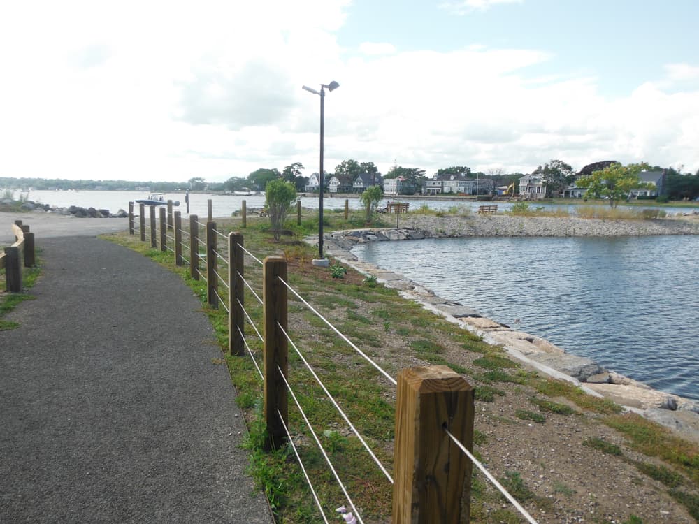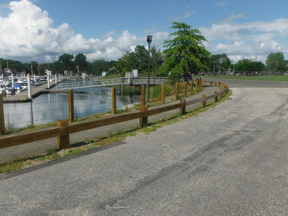 Compo Beach trail follows along the town beach and adjacent recreational areas that offer swimming, picnic areas, barbecue grills, ballfields, basketball courts, a marina, and a boat ramps. Facilities include restrooms and changing areas.