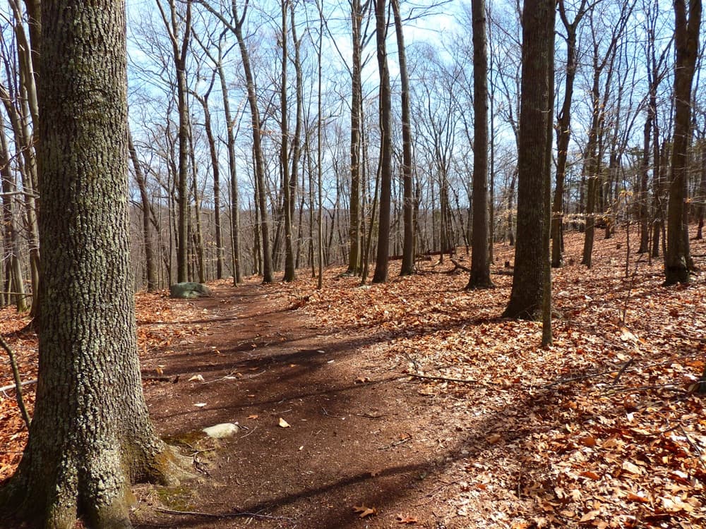 These three adjacent properties have a network of trails offering several routes, including loops, out and back, and end to end. From the Navy Lane or Hudson Lane in the south one can walk to Meadow Woods Road -via the Deep River Land Trust’s Lyons Meadow Preserve- in the north.