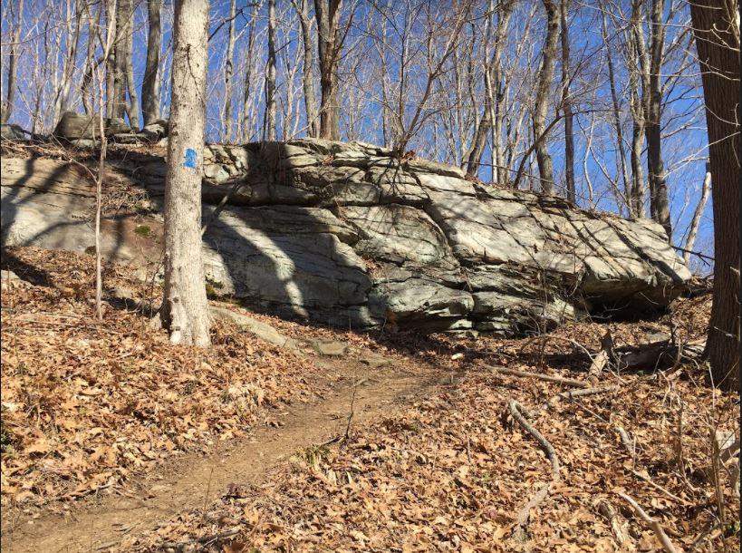 The Blue Loop Trail winds through mixed hardwood forest to points that overlook the Connecticut River. The trail also winds through mountain laurel groves, side slopes and over knobs of ledge and moss. There are some steep sections on the trail and a crossing of a small stream.