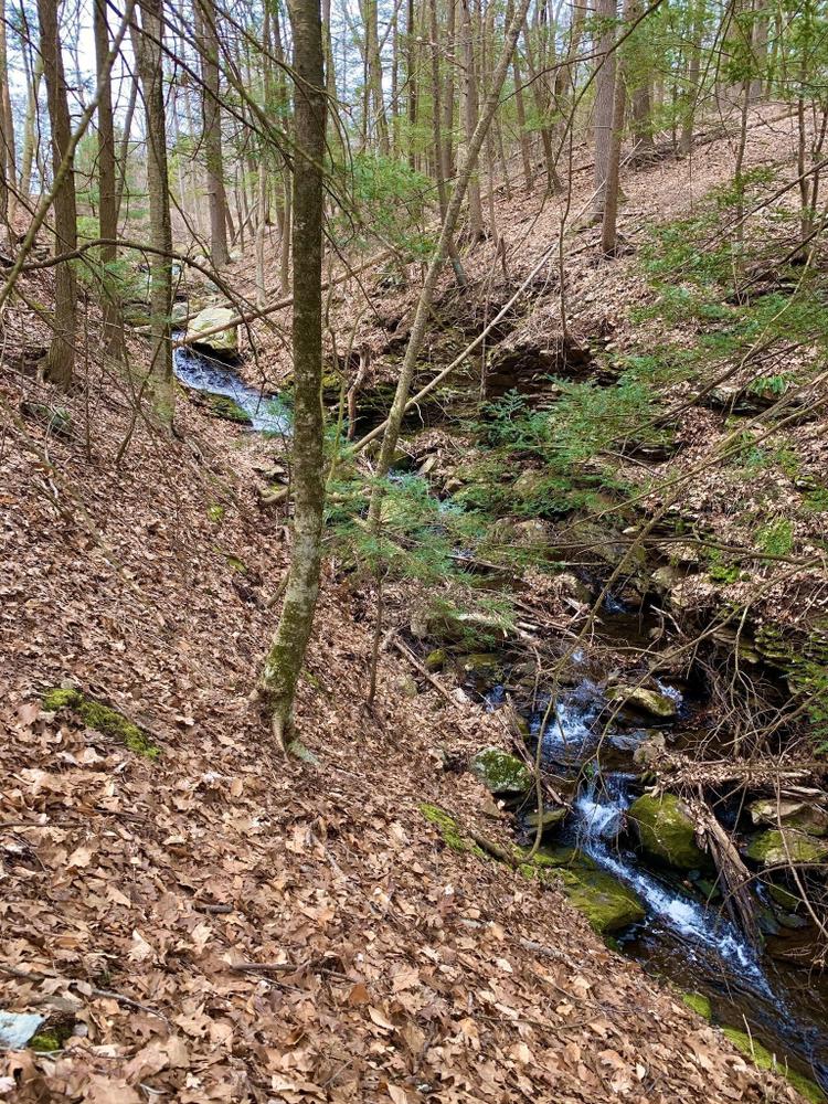 The Edith Toomey Clark Property passes through the stone walls of bygone farm fields, along the Hop River and a marsh, and past a gorge with a cascading stream in the springtime. The "Triple Tree" on the orange and white trail is a great spot for photos with kids.