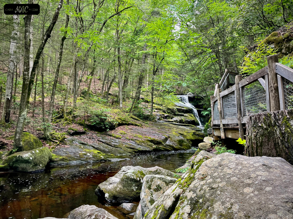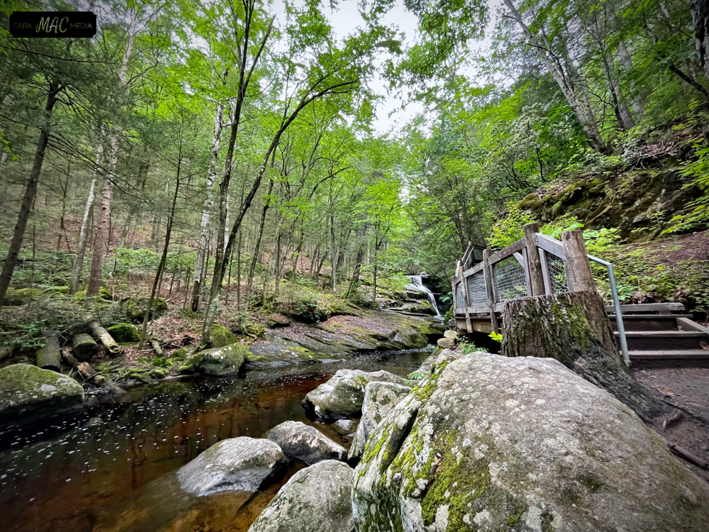 This area contains naturally occurring hazards associated with rocks, steep slopes, and cliffs. Rocks are extremely slippery when wet. Swimming or wading are not recommended in this area. Stratton Brook State Park in Simsbury is a great alternative for swimming.