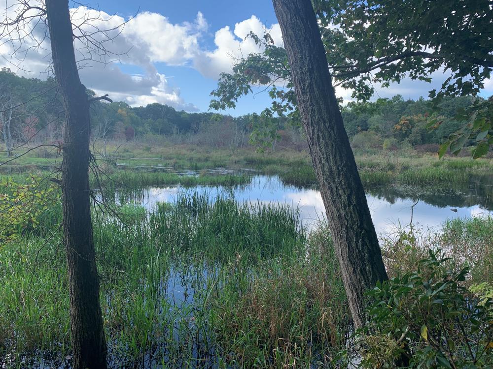 The Blue-White blazed trail includes a former section of the Nipmuck Trail that runs alongside the Fenton River through old-growth hemlock forests and former spruce plantations. The trail can be difficult to follow in places and has steep, difficult side-hill sections. The trail ends in a large meadow that supports early-successional shrub dominated habitat and has some un-blazed trails that may end in deep mud. This trail is 0.7 miles and moderate-high difficulty.