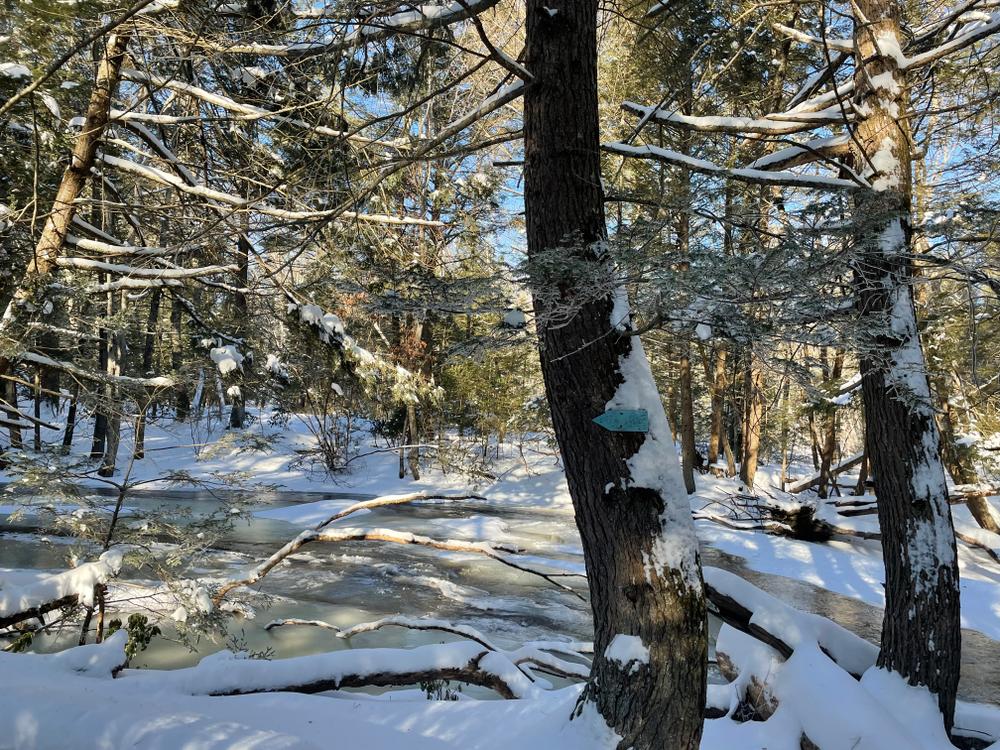 The southern Green trail connects from the Yellow trail to the Nipmuck trail and largely follows the steep path of the old UConn Ski Hill through early-successional forest that has grown in following the abandonment of the Ski Hill in the 1980's. The trail also passes the UConn Forest Outdoor Classroom, which is used by courses and programs for outdoor-focused education. This trail is 0.5 miles and moderate-high difficulty.