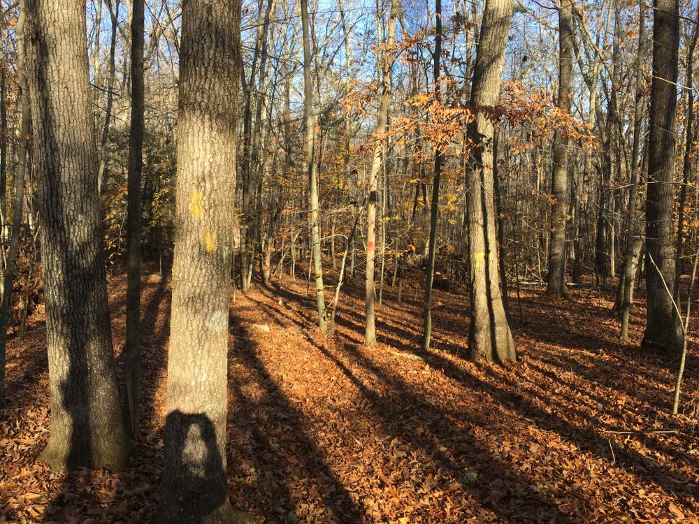 The southern Yellow trail follows an historic roadway that connected Storrs and Gurleyville, with very large, open-grown trees growing along the trail and stone walls indicating the former openness of the area. The surface is extremely rocky and uneven and terminates at the Pumphouse access road. This trail is 0.4 miles and moderate-high difficulty.