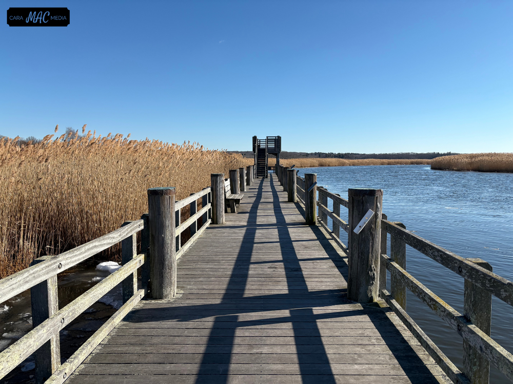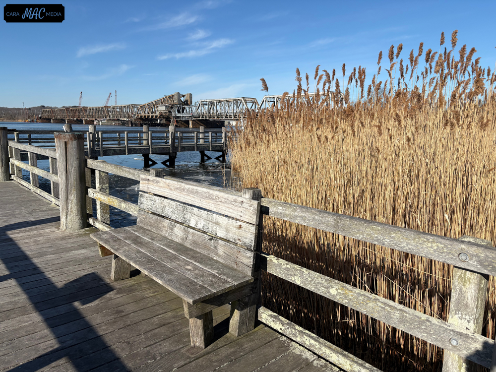 At the end of the boardwalk there is a raised viewing platform where visitors can observe nesting osprey in the marshes and boats on Long Island Sound. This is a great spot for marine fishing or crabbing.