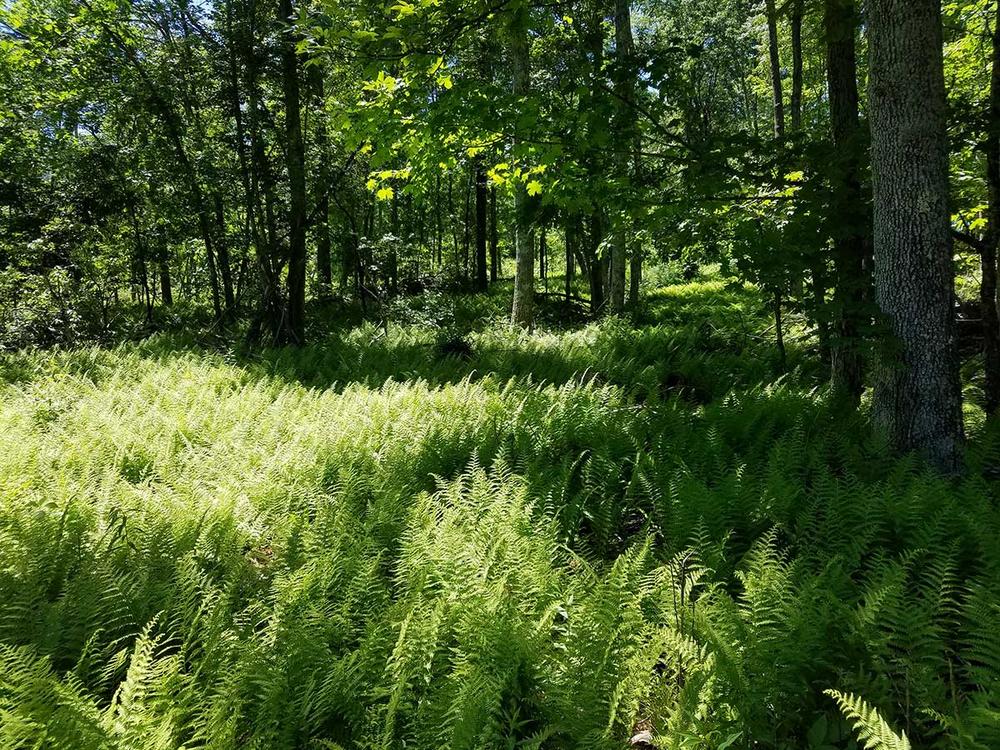 The properties were logged in 2019 to remove dead and diseased trees, and the resulting open canopy and brushy understory provide attractive habitat for migrating and nesting birds, such as the Indigo Bunting, Prairie Warbler, and Eastern Towhee.