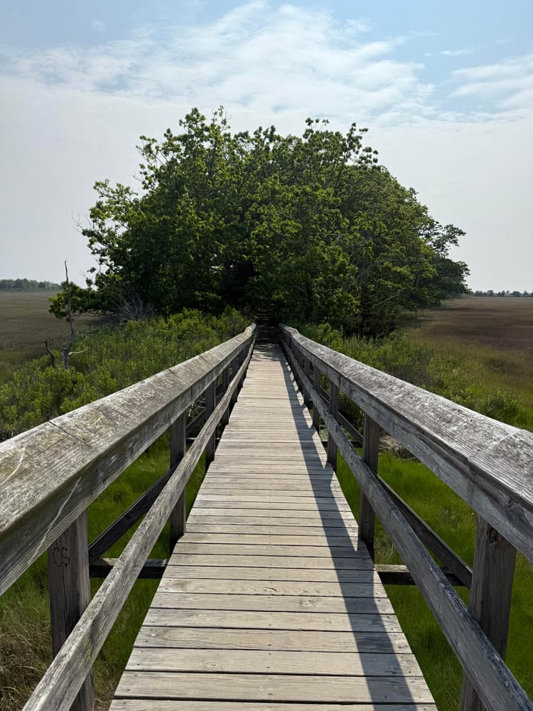 Hammonasset Beach State Park features a short accessible boardwalk and a paved bike and footpath which follows the sand beach. Additionally, at the southeast end of the park, there are footpaths that over views of Long Island Sound along with trails along marshes and to viewing platforms. The park also includes picnic areas, a nature center, and several wildlife viewing stands.
