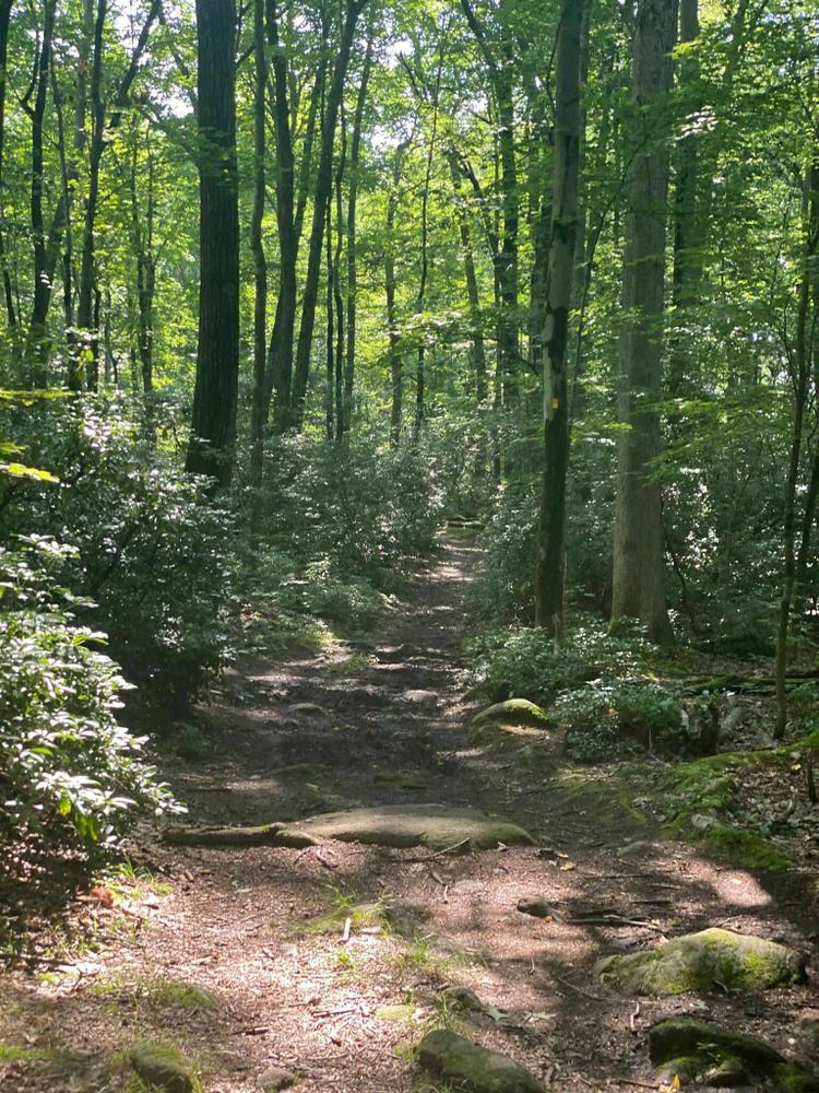 The yellow-blazed trail runs past Chapin Brook, turns uphill, and joins up with the Bird Loop Trail on Mansfield’s Schoolhouse Brook Park. The Bird Loop Trail can be followed until you reach another Joshua’s Trust preserve, the Holt-Kinney Woods.