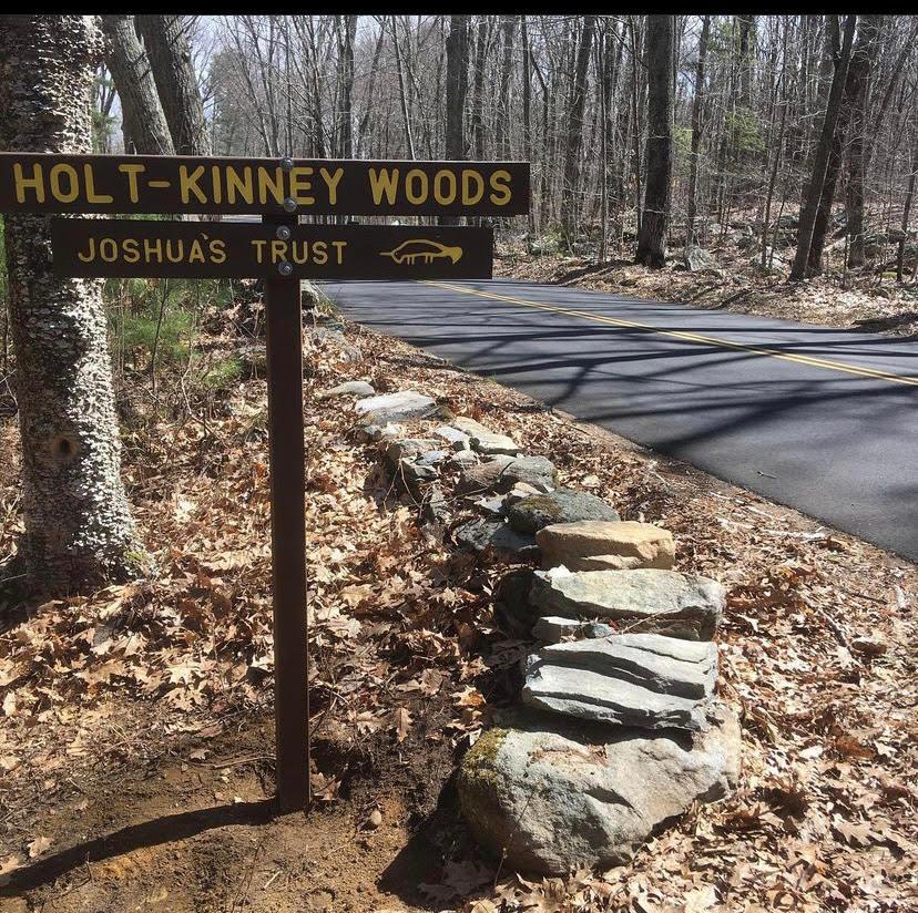 The L-shaped parcel acquired by Joshua's Trust is largely wooded, although a part of the land along Brown’s Road was known locally as the “six-acre meadow.” Along the preserve is a double stone wall whose original purpose remains a mystery. A stand of pine dates back to the 1938 hurricane. Further along visitors will find Chapin Brook. Tracks of deer and wild turkey are abundant. The property is known as the Holt-Kinney Woods, which not only recognizes the recent owners but reflects the Old English definition of “holt,” a wooded hill.