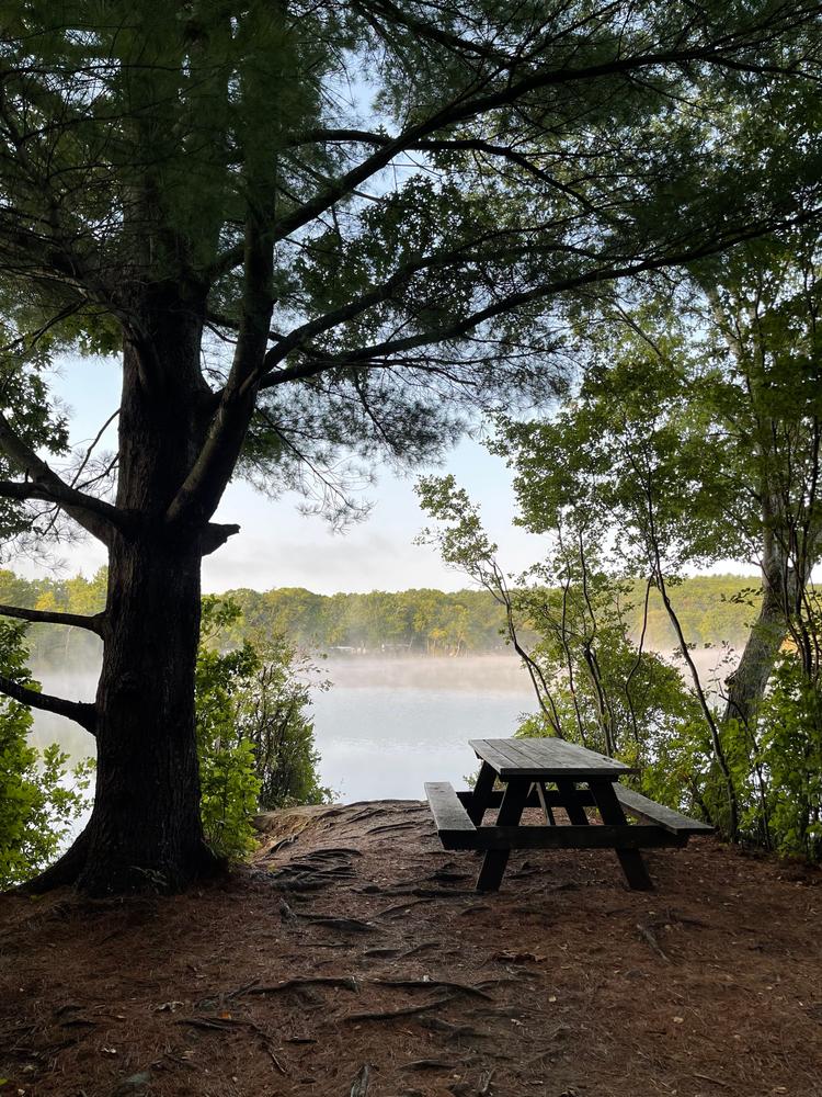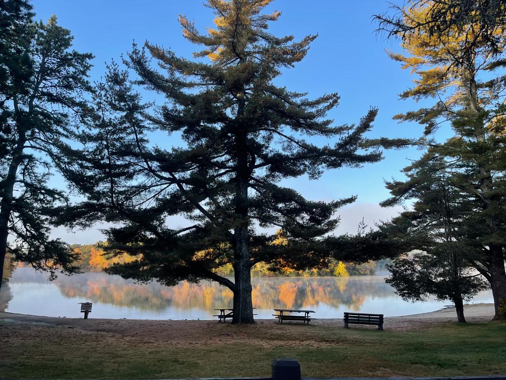 Hopeville Pond State Park is a park and campground in Griswold featuring amenities like picnic tables, parking, and bathrooms. The park includes a boat launch in Hopeville, a small beach in the northwestern corner, and a swimming spot on the southwestern side of the campground. The park has 80 campsites that can be reserved (fees apply).