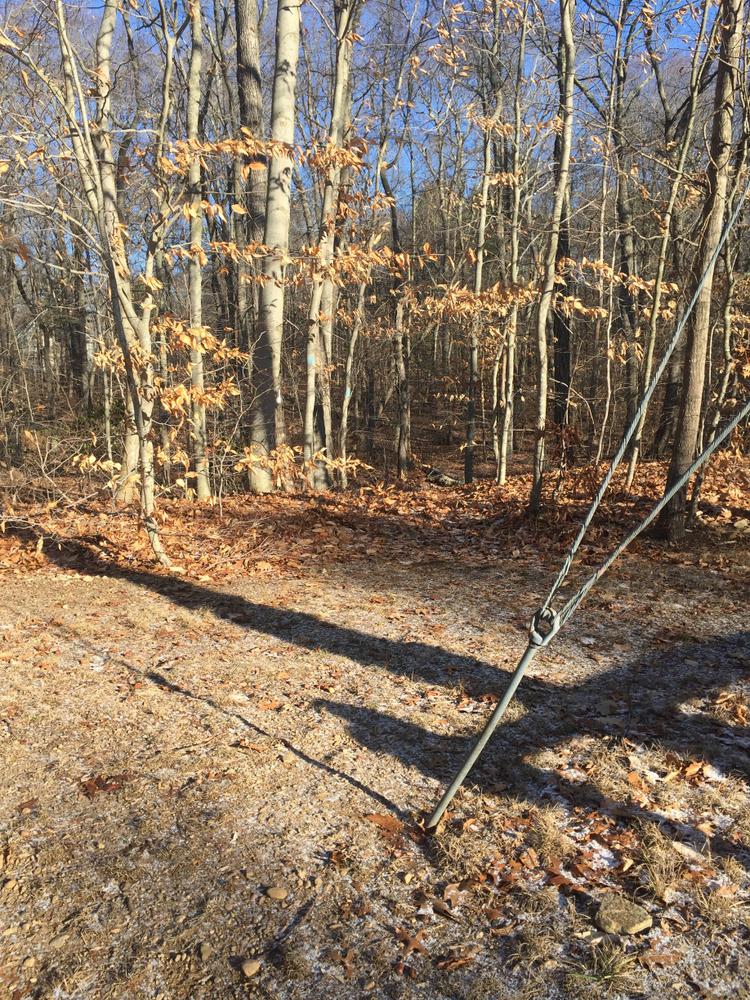 The wall marks the end of the Indigo Trail and the beginning of the aforementioned unmapped trail on other private lands. Following this trail, leads to a branch to the north that joins the Double Loop Trail. straight ahead the trail passes east and then sharply north and over a high promontory before eventually ending on Warpas Road a few hundred feet west of its junction with Copse Road, near the entrance to the Camp Hadley Trail.
