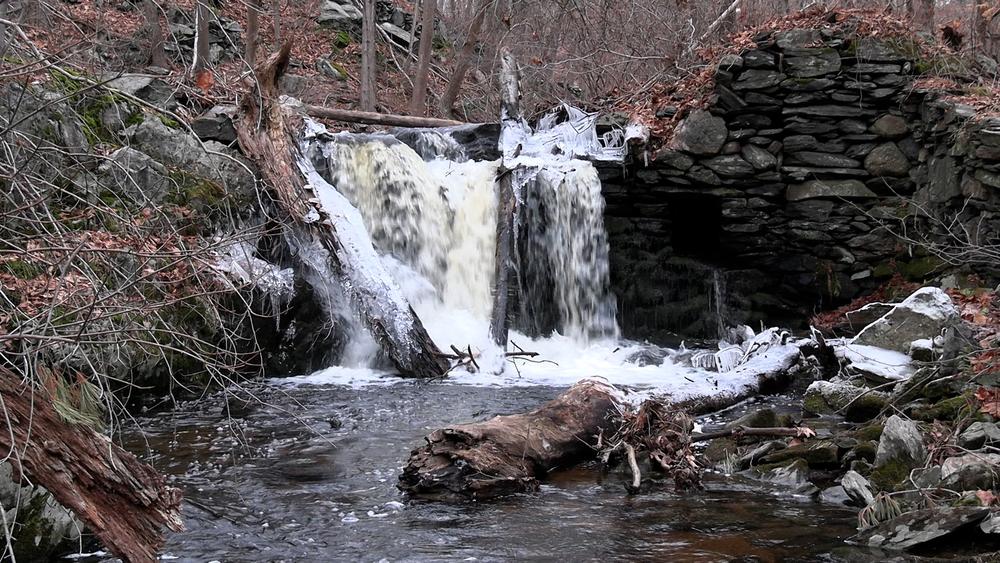 The trees along the blue circle Tamarack Trail are actually European Larch, a close relative to the Tamarack tree, also called the American Larch. The orange triangle Hemlock Trail has majestic hemlock spires along its path. Nearly all of southern Connecticut was once cleared for farming. Farming was discontinued early here, and trees quickly returned that, protected in this ravine, have grown taller than on the surrounding land.