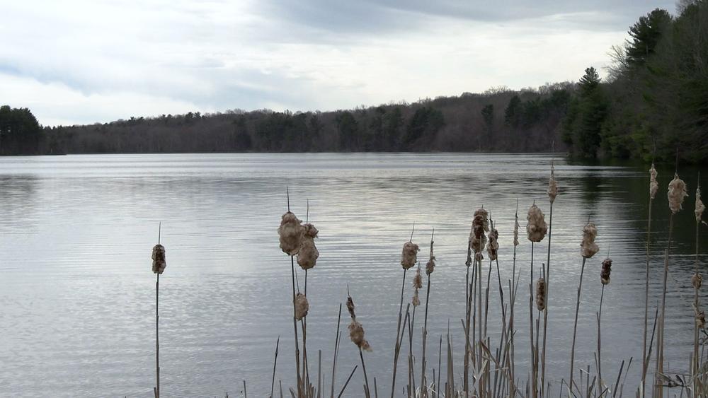 The white square Lake Trail on the east side of the lake crosses an old field that once grew hay for the water company’s draft horses. The field is now planted with white pine, larch and Norway spruce. Look for a large boulder called a glacial erratic. This boulder was pushed here by a glacier more than 15,000 years ago. The white square Lake Trail on the west side of the lake is a bird watcher’s delight with habitat that includes maturing and medium-sized maple and birch, alternating with tall pines and clearings dominated by blackberries, goldenrod, and meadowsweet.
