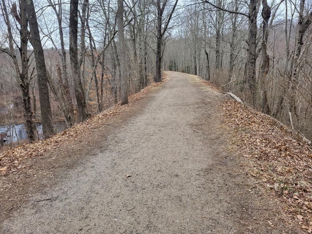 The Larkin State Park Trail follows a scenic 1800s railroad bed that meanders around hills and wetlands through four towns: Middlebury, Naugatuck, Oxford, and Southbury.