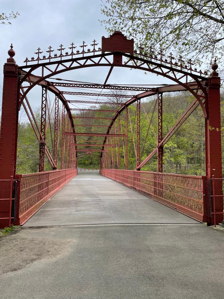 Across the Housatonic River via the Lover's Leap historic iron bridge, are the Hurd Estate Trails, including the Lover's Leap Trail, the Tea House Trail, the Castle Loop, the Hurd Trail, and the out and back Falls Mountain Trail. This section of trails features additional ruins and a scenic vista.