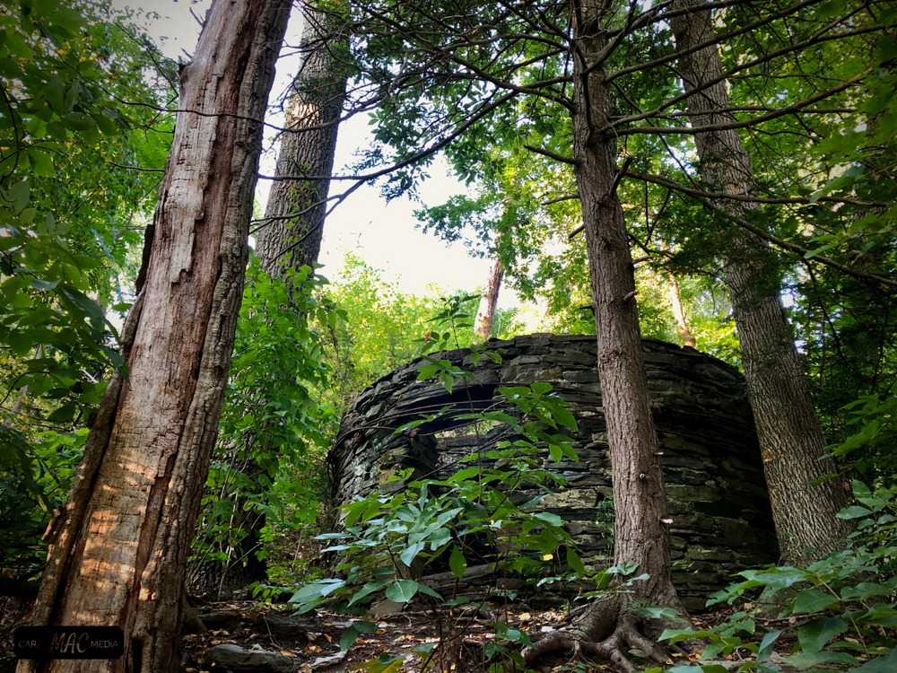 The upper section across the Park Road from the parking area contains the Old Factory Trails and features the historic ruins of the Silex Factory.