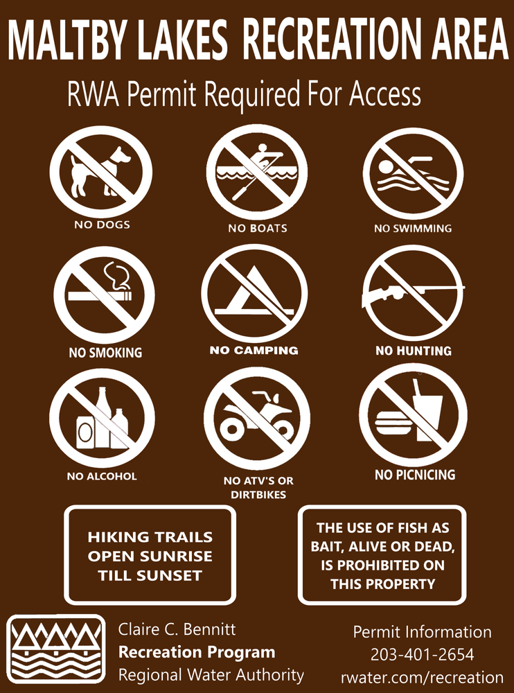 From the Wilbur Cross Parkway (Route 15) take Exit 57. Head east on Derby Avenue (Route 34) towards New Haven. After about 3 miles, the Maltby Lakes entrance and parking lot are located an access road.