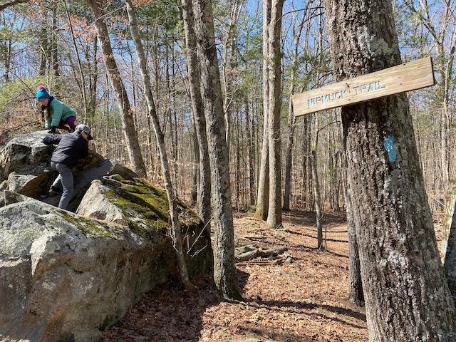 The Nipmuck Trail extends from Mansfield north to the Massachusetts border. It is shaped roughly like an upside-down fork and has two southern branches: the West Branch starts on Puddin’ Lane in Mansfield; the East Branch starts in Mansfield Hollow State Park in North Windham. The northern terminus of the Nipmuck Trail is in the beautiful Bigelow Hollow State Park.