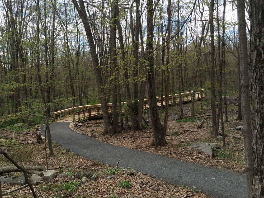From the southern trail head, a 0.4 mile section, Quarry Pond Trail is accessed at the back of the commuter lot by going southward over a refurbished car bridge. This section offers great views of the Norwalk River.
