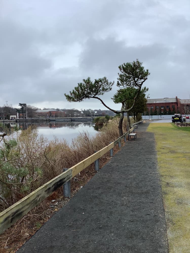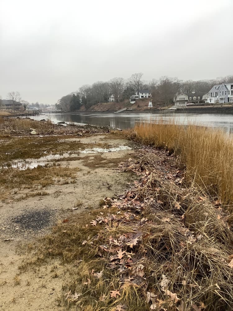 Originally this town owned property was just under 4 acres of mostly wetland and salt marsh. Typical marsh vegetation found here include salt water cord grass, salt hay, seaside alder and reed. A gravel path provides access to fishing areas and a bench overlooking the marsh.