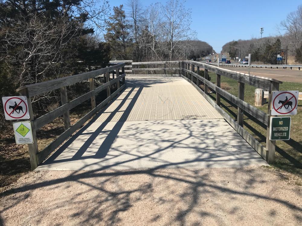 The Hammonasset trailhead of the Shoreline Greenway Trail is the eastern end of a 25-mile cycling and pedestrian trail currently being developed through five towns from Hammonasset Beach State Park in Madison to Lighthouse Point in New Haven. This trail is being pieced together by an all-volunteer organization without an existing right-of-way such as an abandoned rail line. Nearly 6 miles are complete and usable in Branford, East Haven, Madison and soon in Guilford. New sections are added as funding and landowner approvals are obtained. The length of the Hammonasset section is 1.3 miles on way, 2.6 miles out and back.