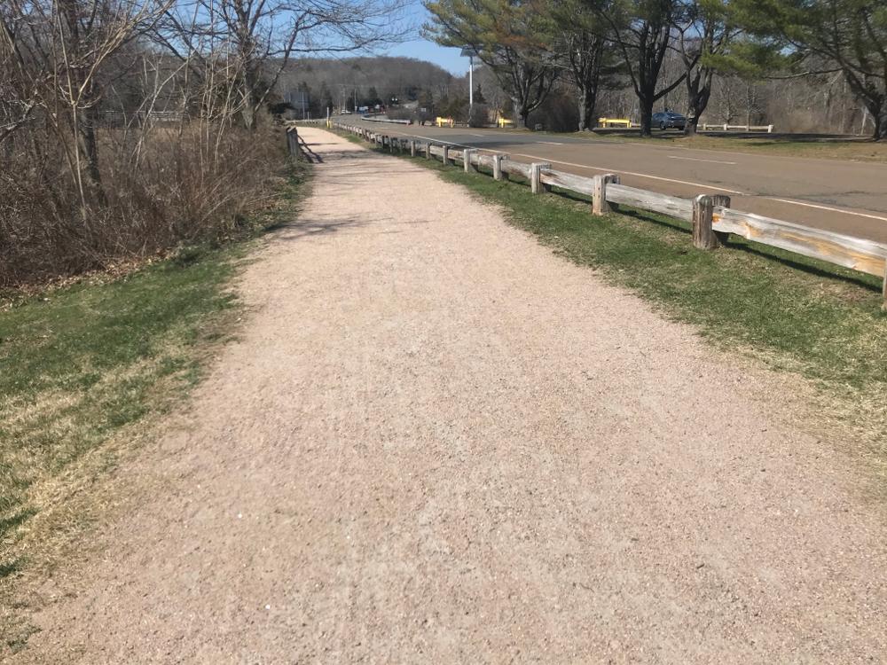 Shoreline Greenway trails are generally easy and as accessible as the terrain allows, with some small hills. This section of the trail is hard-packed with crushed stone.