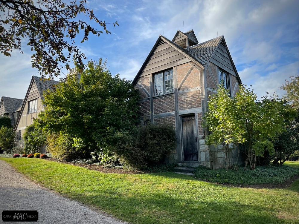 Miss Chase loved the outdoors and as much care was given to the landscaping as was given to the design and furnishings of her home. Surrounding her home are plantings of holly, lilac, and juniper. Apple trees line the drive and formal gardens on each end of the house compliment the English Tudor architecture.