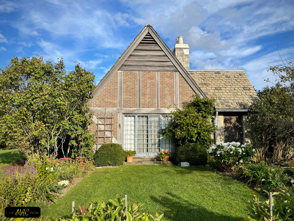 In 1917, Miss Chase received from her father approximately 16 acres on Jefferson Hill in Litchfield. Here she built a rustic cabin, which was replaced with a more substantial summer home in 1923. She hired noted architect Richard Henry Dana, Jr. to help her design and build the English Tudor style house which was completed in 1925. The exterior woodwork is of cypress, the downspouts are lead, the walls of brick and stucco, and the roof is slate. The interior woodwork is oak, as is most of the flooring. The foyer, hallway, and dining room floors are of polished terra cotta tile. Most of the interior walls are of the same type of stucco as is found on the exterior. Fine craftsmanship, an eye for detail, and understated wealth are evident throughout the house, which is tastefully and simply furnished with 17th and 18th-century English country antiques.