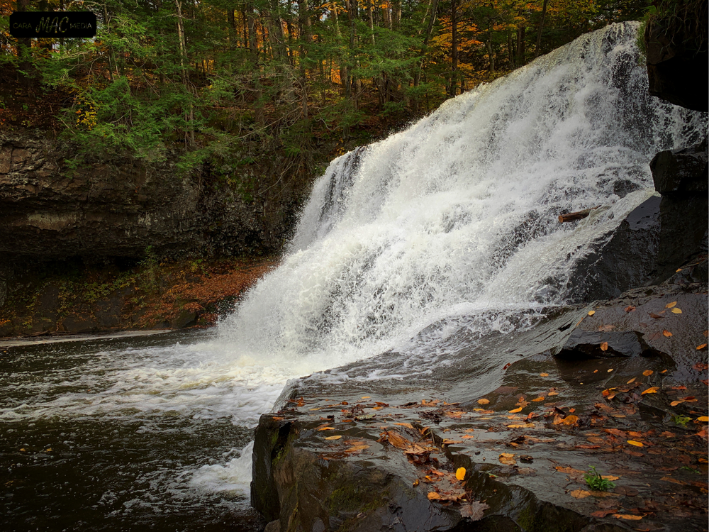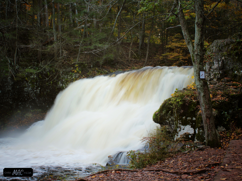 The majority of trails within the park are wide, easy walking carriage roads established by Clarence Wadsworth. This includes the 1.5 mile one way walk to the Big Falls from the main park area. Hikers should follow the orange trail to its terminus at Cherry Hill Road, then turn right on Cherry Hill Road to cross the active train tracks and reach the Big Falls area. The yellow trail in the northeast corner is a moderate singletrack trail that parallels the Laurel Grove Brook. The blue trail located west of the orange trail is an advanced trail that leads down into a ravine, accessing views of the Little Falls. The red trail loop tends to be muddy in the Spring, and is best avoided during Spring thaw.