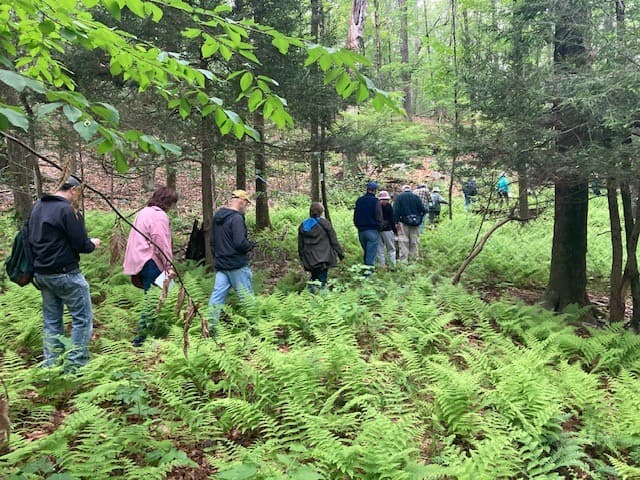 Whispering Pines is 47 acres of woodlands, streams and historic features donated to the Bethany Land Trust by Irene Stahl in 2022. Whispering Pines abuts two Land Trust parcels along Briar Road in the Bethany Farms trails system and the town’s Carrington Preserve.