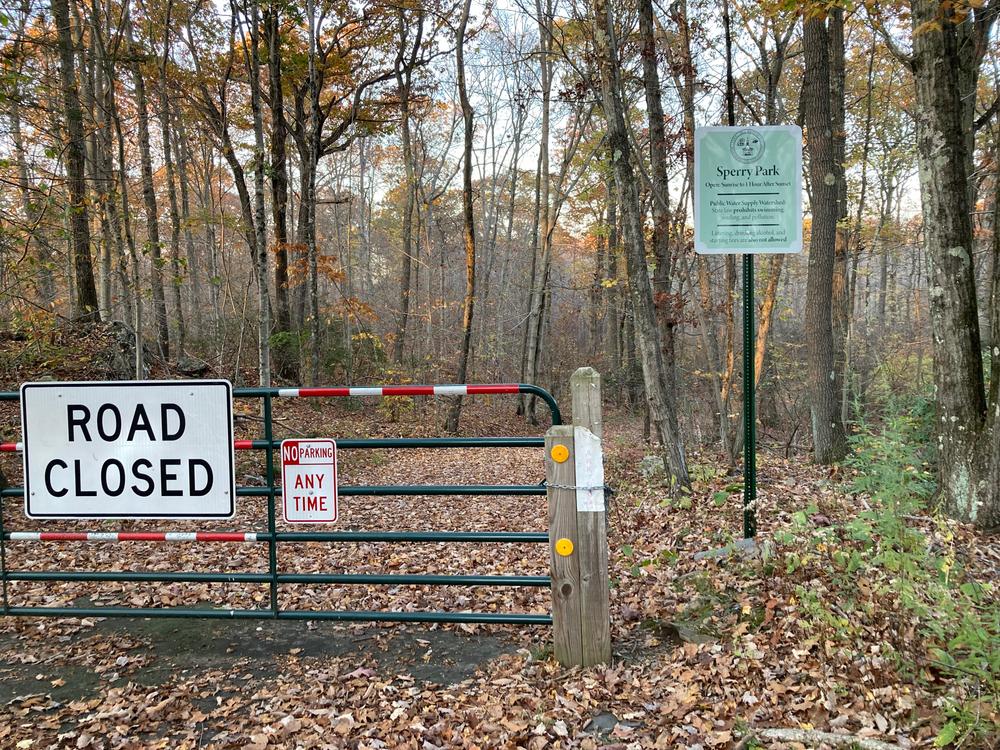 The trail follows and then crosses Sperry Road (closed to through traffic each winter). The Sargent River flows south through Sperry Park and Sperry Falls from Lake Chamberlain in Bethany down to Lake Glen in Woodbridge. Water from the falls was used to run a wool processing mill in the late 18th to early 19th century. There are many old stone walls to be seen.